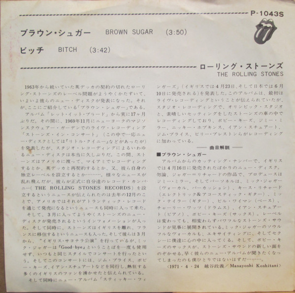 The Rolling Stones – Brown Sugar / Bitch (7″, Single, RP)