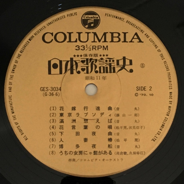 Various – 日本歌謡史 第五集 昭和十一年 (LP, Comp, Mono, Har)