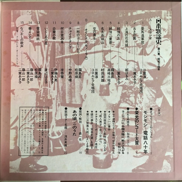 Various – 日本歌謡史 第八集 昭和十四年 (LP, Comp, Mono, Har)