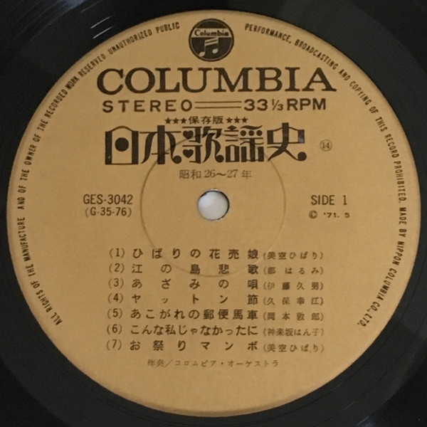 Various – 日本歌謡史 第十四集 昭和二十六年★★昭和二十七年 (LP, Comp, Mono, Har)