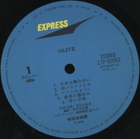 Yuming = 松任谷由実 – Olive (LP, Album, RP)